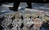Petugas kepolisian memusnahkan barang bukti hasil kegiatan kepolisian Polda Metro Jaya di Polda Metro Jaya, Jakarta, Kamis (19/12). (FOTO : Thoudy Badai_Republika)