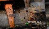 Alat berat memusnahkan barang bukti hasil kegiatan kepolisian Polda Metro Jaya di Polda Metro Jaya, Jakarta, Kamis (19/12). (FOTO : Thoudy Badai_Republika)
