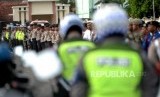 Gelar Pasukan Jelang Nataru. Pasukan gabungan mengikuti Apel Gelar Pasukan Operasi Lilin Progo 2019 di Yogyakarta, Jumat (20/12). (FOTO : Republika/ Wihdan)