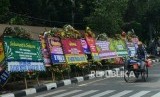 Selain memenuhi pelataran depan gedung KPK, karangan bunga tersebut juga telah memenuhi jalan raya yang berada di depan gedung Merah Putih KPK.