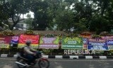 Pengendara motor melintas di dekat karangan bunga yang terpajang di depan Gedung KPK, Jakarta, Jumat (20/12). (FOTO : Republika/Putra M. Akbar)