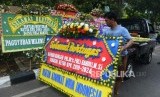 REPUBLIKA.CO.ID, JAKARTA -- Karangan bunga berisikan ucapan selamat atas pelantikan pimpinan Komisi Pemberantasan Korupsi (KPK) terpilih mulai berjejer memenuhi pelataran depan gedung Merah Putih KPK, Jakarta, Jumat (20/12).