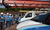 GM PT PLN UID (Unit Induk Distribusi) Banten Doddy B. Pangaribuan (ketiga kiri) memeriksa mobil Unit Layanan Pelanggan saat Apel Siaga Pasokan Listrik di Alun-alun Serang, Banten, Jumat (20/12/2019). (FOTO : ASEP FATHULRAHMAN/ANTARA FOTO)