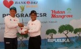 Direktur Kredit UMK & Usaha Syariah Bank DKI, Babay Parid Wazdi (kanan) menyerahkan  bibit mangrove kepada Wakil Walikota Jakarta Utara, Ali Maulana Hakim (kiri) pada program Corporate Social Responsibility Hutan Mangrove Bank DKI Tahun 2019 di Kawasan Ekowisata Mangrove Pantai Indah Kapuk, Jakarta (20/12).  Pada acara tersebut, Bank DKI menyerahkan 5.000 bibit mangrove di Jakarta Utara. (FOTO : Bank DKI )