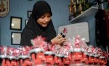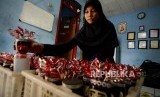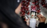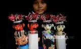Pengrajin menyelesaikan pembuatan boneka Ondel-Ondel berbahan dasar botol plastik di Sanggar Deprok, Pondok Labu, Jakarta, Sabtu (21/12). (FOTO : Thoudy Badai_Republika)