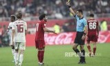 Abdulrahman Al Jassim mengganjar kartu kuning kepada Mohamed Salah pada laga fina FIFA Club World Cup 2019 antara Liverpool FC melawan CR Flamengo, di Doha, Qatar, Sabtu (21/12) dini hari (FOTO : Ali Haider/EPA-EFE)