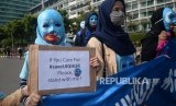 Dalam aksinya mereka mengecam tindakan kekerasan dan penyiksaan terhadap kaum Muslim Uighur di CIna.