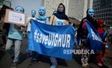 REPUBLIKA.CO.ID, JAKARTA -- Seorang anak membawa poster saat mengikuti aksi solidaritas Uighur saat hari bebas kendaraan bermotor di kawasan Bundaran HI, Jakarta, Ahad (22/12).