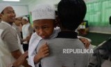 Khitan Massal. Seorang anak digendong orang tuanya seusai mengikuti khitan massal di Sekolah Dasar Islam Terpadu (SDIT) Al Iman, Bekasi Barat, Ahad (22/12). (FOTO : Republika/Edwin Dwi Putranto)