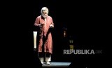 Menteri Keuangan Sri Mulyani melakukan monolog pada perigatan Hari Ibu Kerja Profesional tanpa Pelecehan Seksual di Jakarta, Ahad (22/12). (FOTO : Republika/Prayogi)