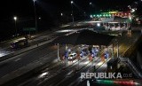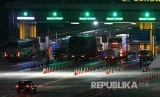 REPUBLIKA.CO.ID, KARAWANG -- Sejumlah kendaraan bermotor melintas di Gerbang Tol (GT) Cikampek Utama, Karawang, Jawa Barat, Senin (23/12/2019).