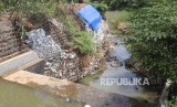 Sejumlah karung berisi limbah bahan berbahaya dan beracun (B3) digunakan sebagai penahan tanggul sungai di Desa Maesan, Kediri, Jawa Timur, Senin (23/12/2019). (FOTO : Prasetia Fauzani/ANTARA FOTO)