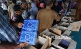 Pekerja membongkar surat suara di gudang Komisi Pemilihan Umum (KPU) Kabupaten Ciamis, Jawa Barat, Senin (23/12/2019). (FOTO : ADENG BUSTOMI/ANTARA FOTO)
