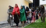 Penyandang disabilitas menyelamatkan diri menuju lapangan terbuka saat Simulasi Evakuasi Mandiri Gempa dan Tsunami di Desa Surin, Kecamatan Meuraxa, Banda Aceh, Aceh, Rabu (25/12/2019). (FOTO : AMPELSA/ANTARA FOTO)