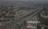 Foto udara Suasana lalu lintas tol Jakarta Cikampek di daerah Cikunir, Bekasi, Jawa Barat, Kamis (26/12/2019). (FOTO : Fakhri Hermansyah/ANTARA FOTO)