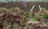 Pekerja memanen bawang merah jenis Bima Brebes di persawahan Desa Wonotenggang, Rowosari, Kendal, Jawa Tengah, Kamis (24/12/2019). (FOTO : ANIS EFIZUDIN/ANTARA FOTO)