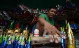 Pedagang menyelesaikan pembuatan terompet di kawasan Glodok, Jakarta, Jumat (27/12). (FOTO : Thoudy Badai_Republika)