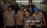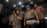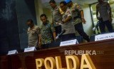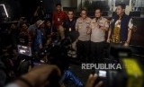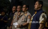 Karopenmas Mabes Polri Kombes Argo Yuwono (kedua kanan) dan Kabid Humas Polda Metro Jaya Yusri Yunus (ketiga kanan) memberikan keterangan saat konferensi pers terkait tersangka penyiraman penyidik senior KPK, Novel Baswedan di Polda Metro Jaya, Jakarta, Jumat, (27/12). (FOTO : Republika/Putra M. Akbar)