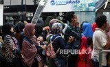 Sejumlah warga mengantre naik bus tingkat wisata Trans-Jakarta di Jalan Medan Merdeka Selatan, Jakarta, Jumat (27/12/2019). (FOTO : Antara/Aditya Pradana Putra)