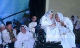 Istri dari almarhum Presiden ke-4 Abdurrahman Wahid atau Gus Dur, Sinta Nuriyah Wahid (kedua kanan) bersama putrinya Yenny Wahid (kedua kiri) dan Anita Hayatunnufus (kanan) bersama para tokoh bangsa saat menghadiri Haul ke-10 Gus Dur di Ciganjur, Jakarta, Sabtu (28/12). (FOTO : Republika/Putra M. Akbar)