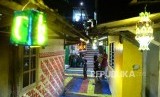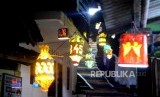 Hiburan Alternatif Kampung Lampion. Aneka bentuk lampion dipasang warga di Kampung Lampion Code 18, Yogyakarta, Sabtu (28/12) malam. (FOTO : Republika/ Wihdan)