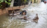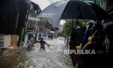 REPUBLIKA.CO.ID, JAKARTA -- Hujan lebat yang mengguyur Jakarta pada awal tahun menyebabkan banjir di beberapa titik di Ibu Kota. Salah satunya di kawasan Keluruhan Jatipadang, Pasar Minggu Jakarta Selatan. Di sini banjir menyebabkan genangan air setinggi 30-60cm.