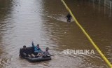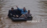 REPUBLIKA.CO.ID, JAKARTA -- Warga nampak menikmati banjir setinggi 40 cm – 80 cm dengan menggunakan sofa udara di jalan Perintis Kemerdekaan Jakarta, Rabu (1/1).