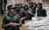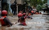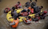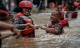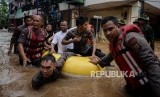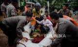 REPUBLIKA.CO.ID, JAKARTA -- Petugas Kepolisian mengevakuasi korban banjir di Kampung Bayur, Cipinang Melayu, Jakarta Timur, Rabu (1/1).