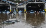 REPUBLIKA.CO.ID, JAKARTA -- Banjir besar yang melanda Jakarta turut merendam armada taksi Bluebird yang ada di pool taksi Kramat Jati, Jalan Raya Pondok Gede, Jakarta, Rabu (1/1). Banjir tersebut disebabkan karena tingginya intensitas hujan akibat ekstrem yang mengguyur sejak Selasa (31/12).
