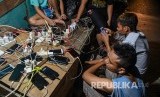 REPUBLIKA.CO.ID, JAKARTA -- Warga melakukan pengisian daya untuk telepon genggamnya saat banjir melanda di kawasan Kembangan, Jakarta Barat, Kamis (2/1/2020).