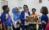 Anggota DPR RI Eko Patrio (tengah) bersama Wakil Ketua DPRD DKI Jakarta Zita Anjani (kedua kiri) memberikan bantuan kepada warga korban banjir di Kelurahan Bidara Cina, Jatinegara, Jakarta, Jumat (3/1). (FOTO : Republika/Putra M. Akbar)