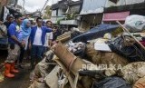 Anggota DPR RI Eko Patrio (kedua kanan) bersama Wakil Ketua DPRD DKI Jakarta Zita Anjani (kedua kiri) saat melihat dampak banjir di Kelurahan Bidara Cina, Jatinegara, Jakarta, Jumat (3/1). (FOTO : Republika/Putra M. Akbar)