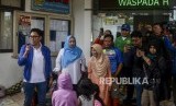 Anggota DPR RI Eko Patrio bersama Wakil Ketua DPRD DKI Jakarta Zita Anjani menyalami warga korban banjir di Kelurahan Bidara Cina, Jatinegara, Jakarta, Jumat (3/1). (FOTO : Republika/Putra M. Akbar)