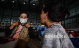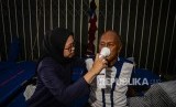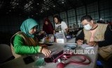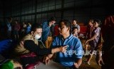 Petugas Puskesmas Jati Asih mengecek kesehatan korban pengungsi di posko Gudang Badan Nasional Penanggulangan Bencana, Jalan Pondok Gede Permai, Jati Asih, Kota Bekasi, Jawa Barat, Jumat (3/1). (FOTO : Thoudy Badai_Republika)