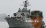 Prajurit TNI AL di atas KRI Tjiptadi-381 saat mengikuti upacara Operasi Siaga Tempur Laut Natuna 2020 di Pelabuhan Pangkalan TNI AL Ranai, Natuna, Kepulauan Riau, Jumat (3/1/2020). (FOTO : M RISYAL HIDAYAT/ANTARA FOTO)