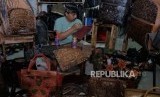 Perajin memproduksi tas lukis dan ukir khas Bali berbahan kulit sapi di Denpasar, Bali, Jumat (3/1/2020). (FOTO : Nyoman Hendra Wibowo/ANTARA FOTO)