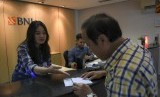Petugas melayani nasabah di Bank BNI KCP Tubagus Angke, Grogol Petamburan, DKI Jakarta, Jumat (3/1/2020). (FOTO : Antara/Nova Wahyudi)