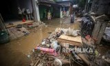 Kondisi rumah yang dipenuhi sampah pasca banjir di Perumahan Pondok Mitra Lestari, Bekasi, Jawa Barat, Jumat (3/1). (FOTO : Thoudy Badai_Republika)