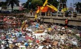 Petugas Dinas Lingkungan Hidup DKI Jakarta membersihkan aliran sungai Mookervart, Cengkareng, Jakarta, Jumat (3/1/2020). (FOTO : FAUZAN/ANTARA FOTO)