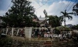 Warga membersihkan rumah pascabanjir di Pondok Arum, Kota Tangerang, Banten, Sabtu (4/1/2020). (FOTO : FAUZAN/ANTARA FOTO)