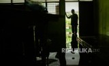 Petugas keamanan Sekolah Dasar Negeri (SDN) Pejagalan 05 pagi mengecek kondisi sekolah yang terendam banjir di Jalan Teluk Gong, Penjaringan, Jakarta Utara, Sabtu (4/1). (FOTO : Thoudy Badai)
