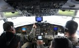 Sejumlah prajurit TNI AU melakukan patroli udara menggunakan Pesawat Boeing 737 Intai Strategis AI-7301 Skadron Udara 5 Wing 5 TNI AU Lanud Sultan Hasanudin Makassar di Laut Natuna, Sabtu (4/1/2020). (FOTO : ANTARA FOTO/M Risyal Hidayat)