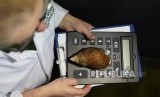 Seorang petugas Kebun Binatang London menimbang Siput Tanah Afrika saat dilakukan pendataan satwa di Kebun Binatang London ZSL di London, Kamis, (2/1). (FOTO : EPA-EFE/WILL OLIVER)