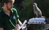 Seorang petugas Kebun Binatang London mendata hewan Meerkat saat dilakukan pendataan satwa di Kebun Binatang London ZSL di London, Kamis, (2/1). (FOTO : EPA-EFE/ANDY RAIN)