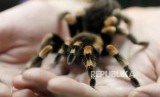 Seorang petugas Kebun Binatang London menunjukkan seekor laba-laba rajutan merah Meksiko saat dilakukan pendataan satwa di Kebun Binatang London ZSL di London, Kamis, (2/1). (FOTO : AP Photo/Frank Augstein)