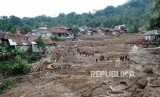 Suasana Kampung Sinar Harapan yang tertimbun longsor di Desa Harkat Jaya, Kecamatan Sukajaya, Kabupaten Bogor, Jawa Barat, Minggu (5/1/2020). (FOTO : Arif Firmansyah/ANTARA FOTO)