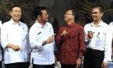 Menteri Pertanian Syahrul Yasin Limpo (kedua kiri) berbincang dengan Gubernur Bali Wayan Koster (kedua kanan) didampingi Dirjen Tanaman Pangan Suwandi (kanan) dan anggota DPD RI Made Mangku Pastika (kiri) usai penandatanganan nota kesepahaman di Denpasar, Bali, Sabtu (4/1/2020). (FOTO : ANTARA FOTO)