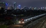 Kereta Rel Listrik (KRL) melintas dengan latar belakang gedung betingkat di Jakarta, Sabtu (4/1/2020). (FOTO : ANTARA FOTO)
