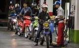 Operator SPBU melakukan pengisian bahan bakar minyak (BBM) ke kendaraan konsumen di SPBU Dago, Bandung, Jawa Barat, Minggu (5/1/2020). (FOTO : ANTARA FOTO)