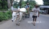 Warga menggunakan gerobak sapi saat mengangkut rumput di Cepogo, Boyolali, Jawa Tengah, Sabtu (4/1/2020). (FOTO : Aloysius Jarot NugrohoANTARA FOTO)